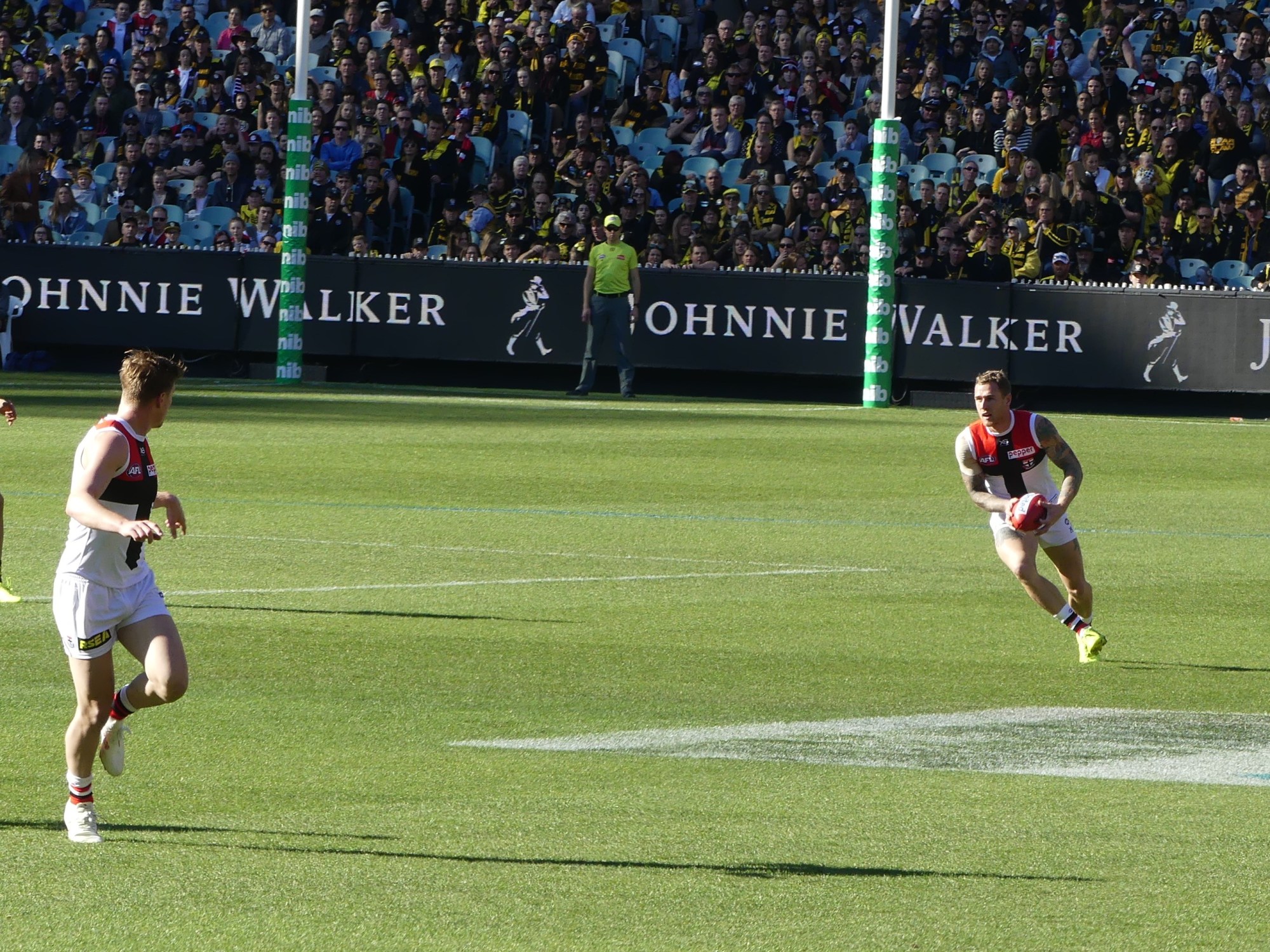 From Round 17 to Round 23 Membrey kicked multiple goals five times from seven games. Membrey finished the 2018 season with 34 goals, 28 behinds, ranked second for the Saints behind small forward Gresham who kicked 35 goals and 20 behinds, they were the only two St Kilda players who kicked more than 19 goals for the season. Membrey ranked second at St Kilda for marks with 132 – one behind Carlisle and took 61 marks inside 50 – ranked third in the AFL during the home and away season behind Jack Riewoldt (86) and Tom Hawkins (74). Tim polled 87 votes at St Kilda’s best and fairest to finish eighth and polled four Brownlow Medal votes to be ranked third at St Kilda behind Jack Steven (18 votes) and Seb Ross (6). St Kilda finished 16th on the ladder with four wins, 17 losses and a draw.