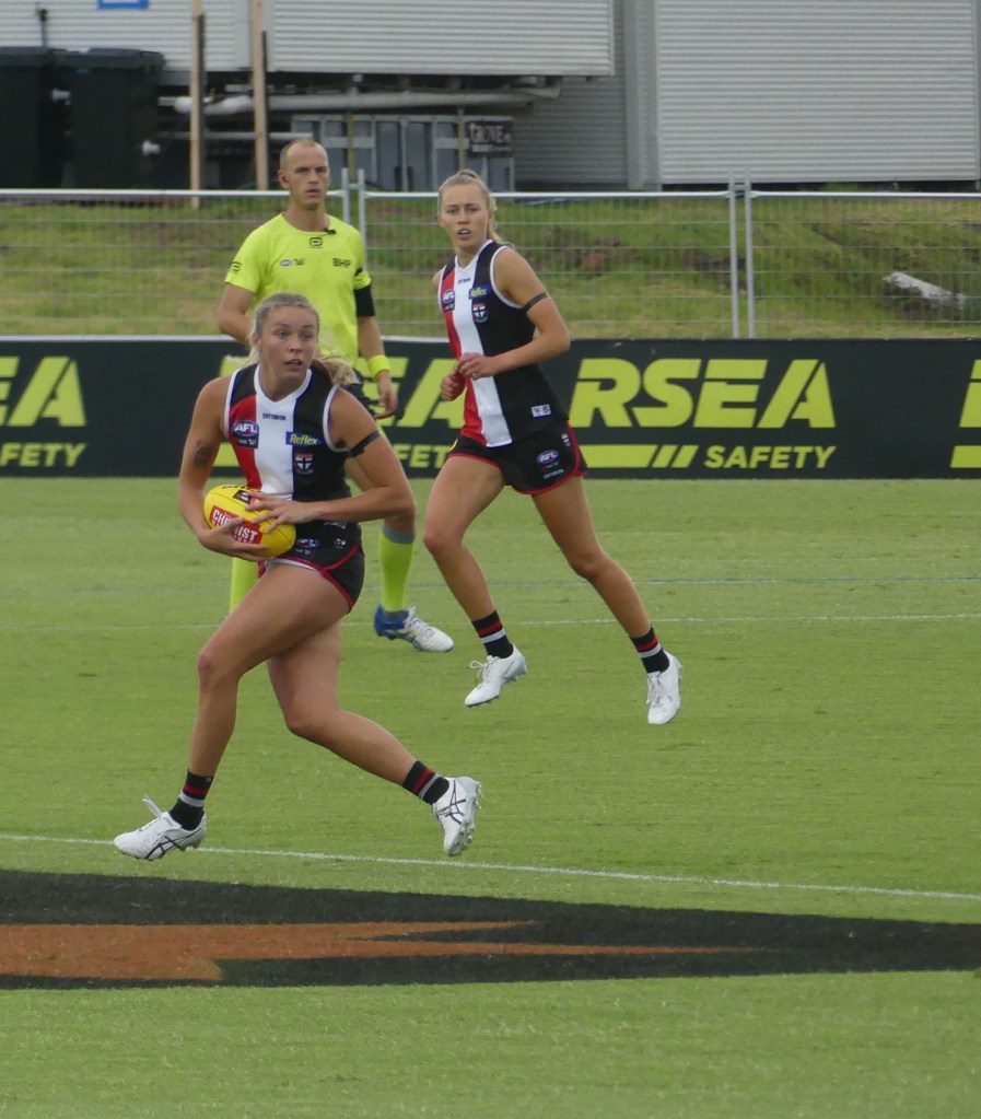 After her impressive performance White was voted the Round 2 Dare Sainter of the Round and commented to saints.com.au “I played okay, but I’m always looking to improve. We were pretty relentless and our tackle pressure was insanely high.”9
