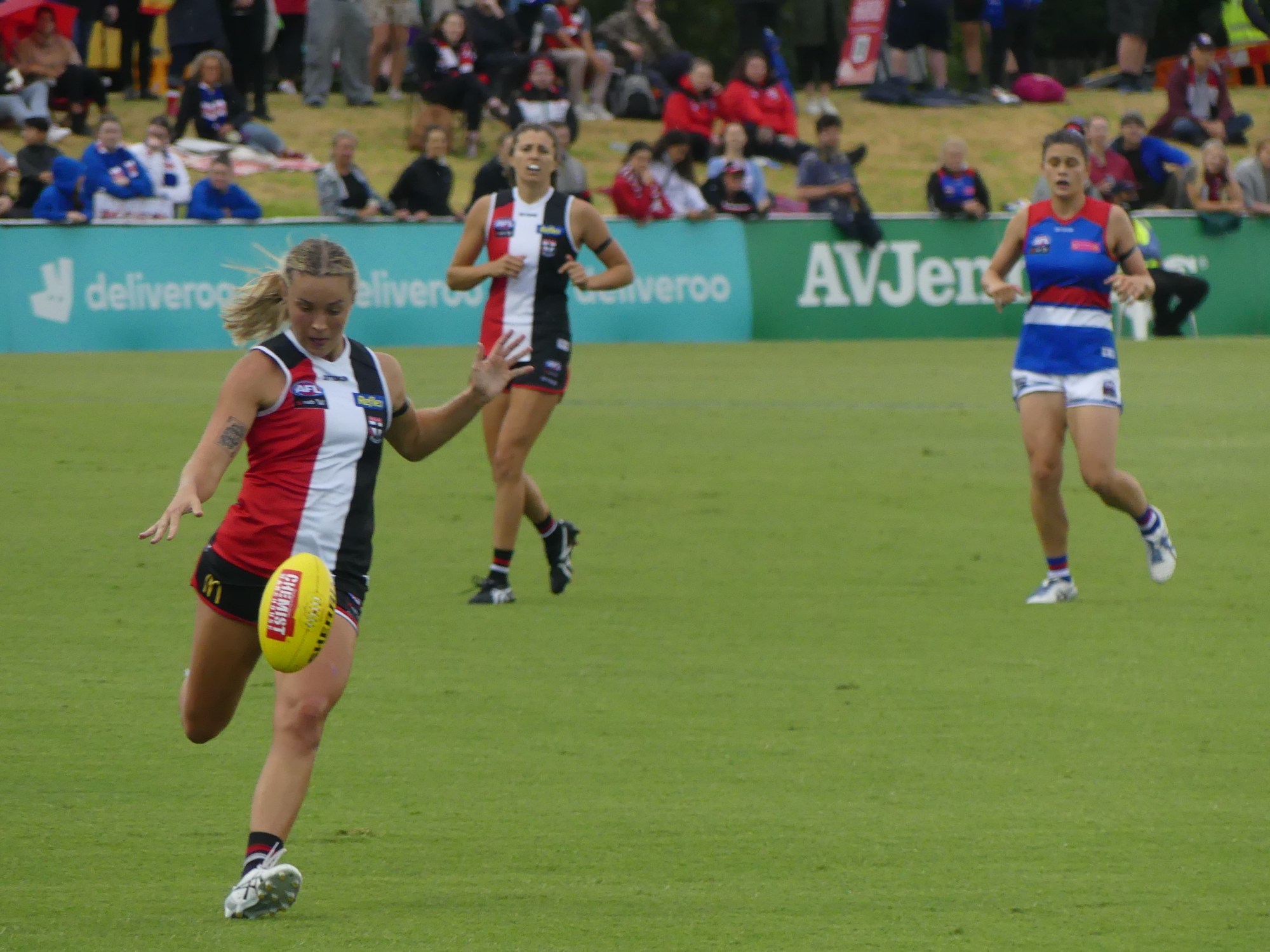 In an outstanding performance against the Western Bulldogs in defense White had 10 kicks, an equal game-high 10 handballs and took an equal game-high seven marks in St Kilda’s nine point victory in a Friday night Round 1 2021 AFLW game at RSEA Park.