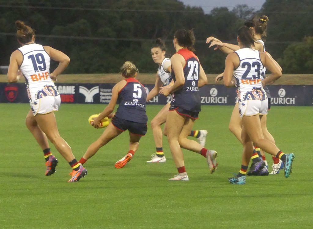 Melbourne travelled to play Adelaide in a preliminary final at Adelaide Final. Whilst Melbourne had the confidence of defeating Adelaide by 28 points in their Round 7 encounter at Casey Fields playing Adelaide at home is a different proposition. Adelaide kicked the only two goals of the first half in the preliminary final and inaccuracy hurt the Demons who were defeated by 18 points, kicking one goal nine behinds to Adelaide’s five goals, three behinds. Hanks was one of Melbourne’s best players, having 12 kicks, a team-high 11 handballs, two marks and laid three tackles.