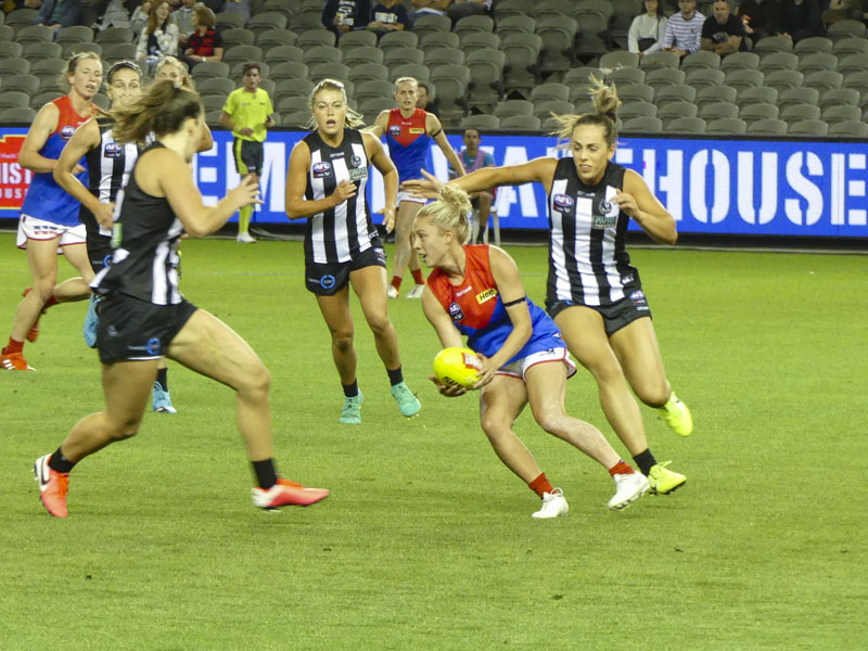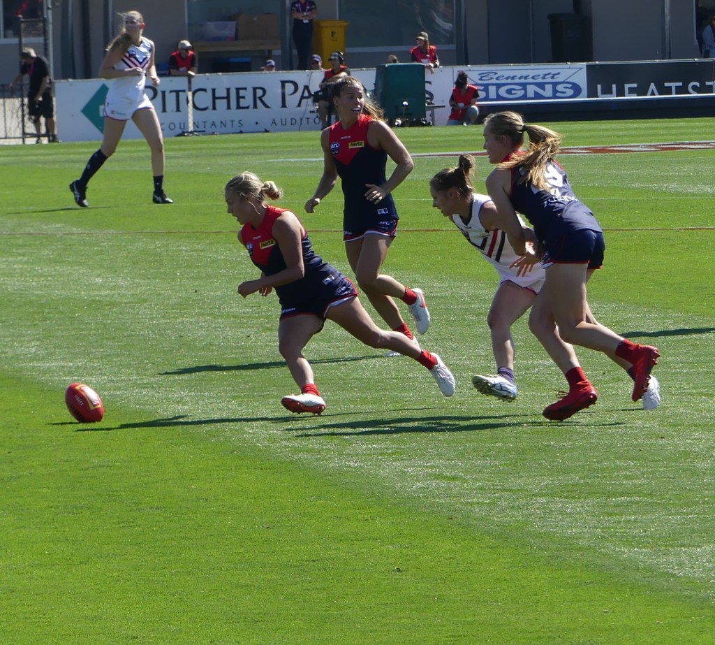 In the off-season several of Melbourne’s experienced players joined rival AFLW clubs with players in this category being Elise O’Dea (Carlton), Bianca Jakobsson (St Kilda), Harriet Cordner (Richmond) and Aliesha Newman (Collingwood). The departure of O’Dea provided Hanks with an opportunity to spend more time in the midfield and she was also O’Dea’s successor in the No. 5 Demons jumper.