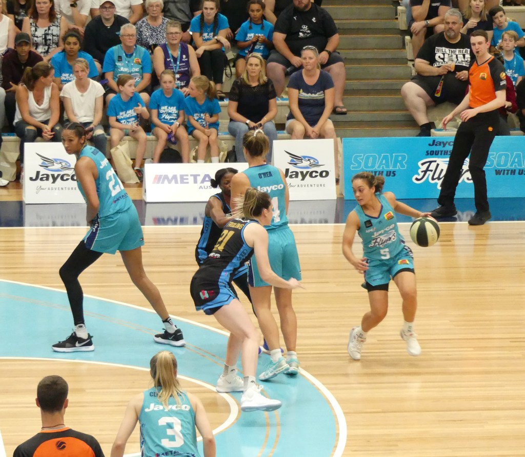 Anneli Maley playing for Southside Flyers against the Melbourne Boomers at the State Basketball Centre on 4 November 2019