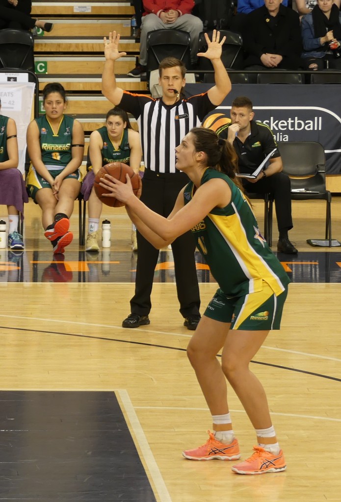 Lauren Scherf shooting a free-throw for Dandenong Rangers against Kilsyth Cobras at the State Basketball Centre in the 2016 SEABL Grand Final on 10 September