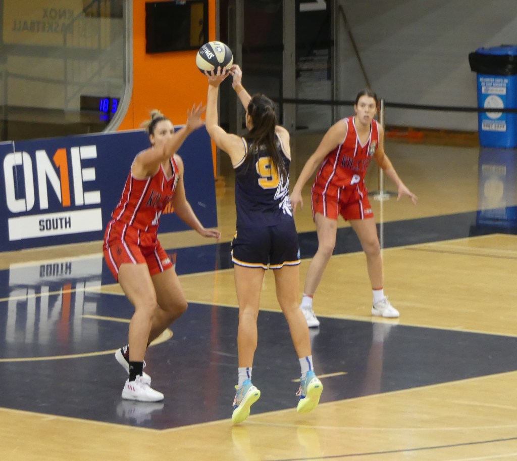 Alicia Froling having a left handed field goal attempt for Knox Raiders against the Kilsyth Cobras at the State Basketball Centre on 21 May 2022