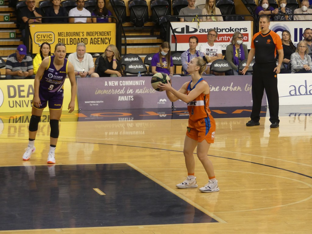 Steph Reid shooting a free-throw for Townsville Fire against Melbourne Boomers at the State Basketball Centre on 25 February 2022
