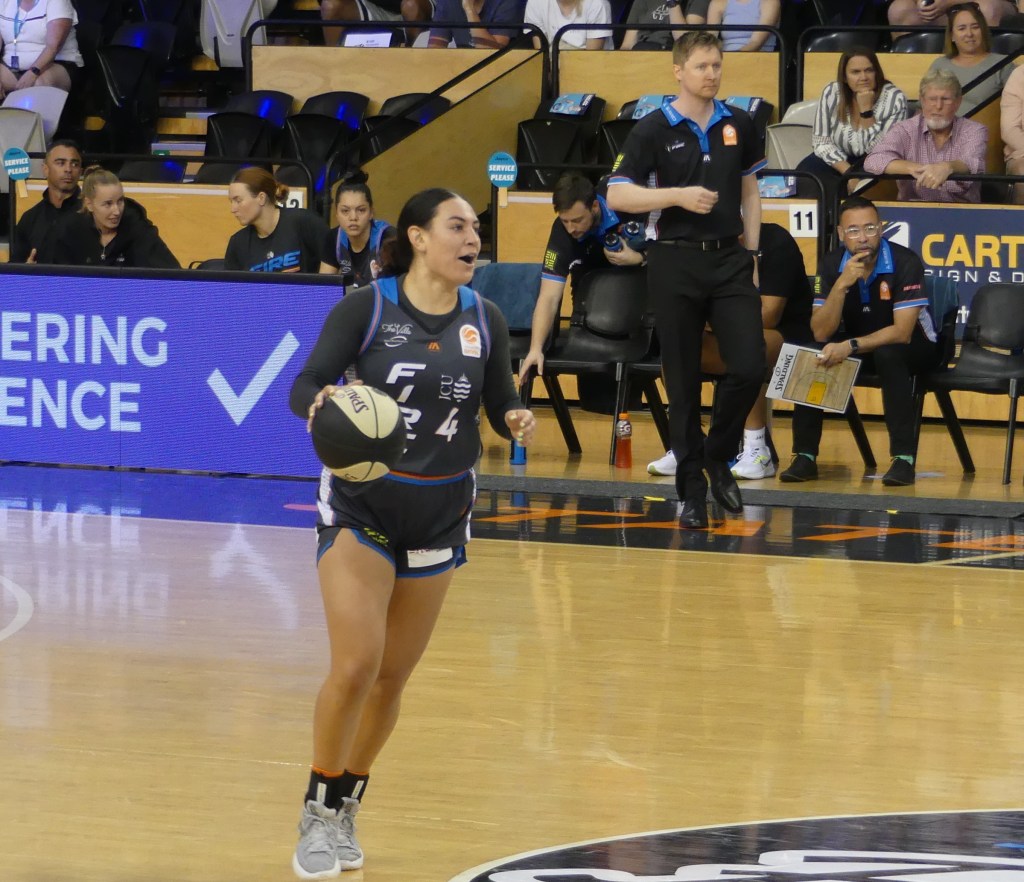 Krystal Leger-Walker playing for JCU Townsville Fire against the Southside Flyers at the State Basketball Centre on 10 December 2022
