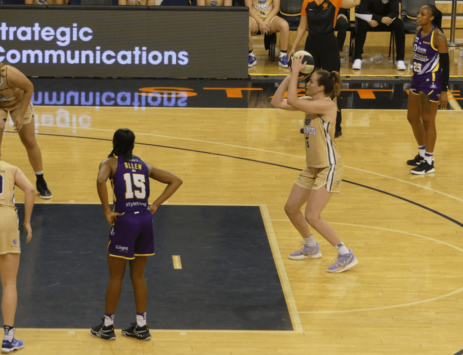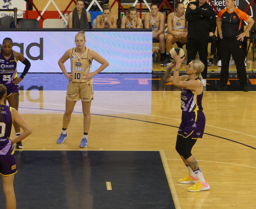 Steph Talbot shooting a free throw for Adelaide Lightning against Melbourne Boomers at the State Basketball Centre on 22 December 2022