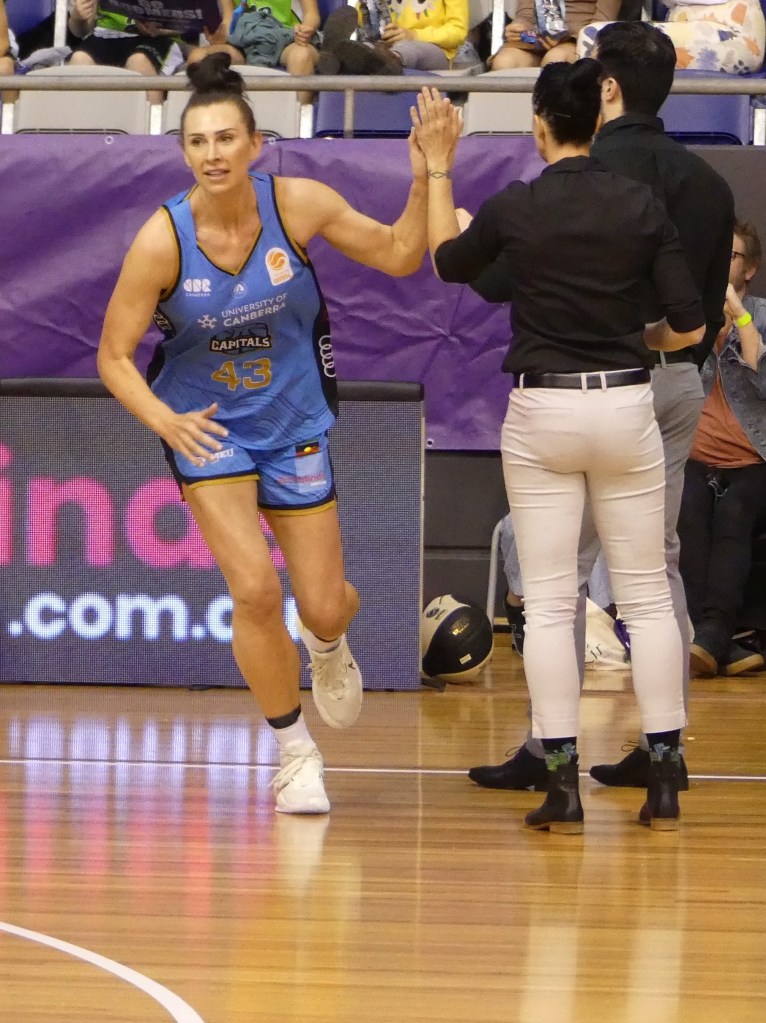 Veal faced a difficult initiation as a WNBL Head Coach with the University of Canberra Capitals in 2022/23 with the Caps losing their first 12 games of the season. The UC Capitals broke through for their first victory of the season in a home game at the National Convention Centre with a 92-85 victory against Bendigo Spirit on 14 January. In a post-game interview on ESPN after the Capitals defeated Bendigo Veal was asked about recording her first win as a WNBL Head Coach and responded “It is not even about the first win, it is just about these girls persisting, playing some really good basketball and getting some reward for that. Just so excited for them and so proud of them. I am glad we got our first win at home, it is a credit to the support and people say that all the time but their positivity when we haven’t won a game all year has been so calming and so reassuring.” Later in the season the Caps had a seven point victory at home against Adelaide and a one point loss on the road against eventual champions JCU Townsville Fire.