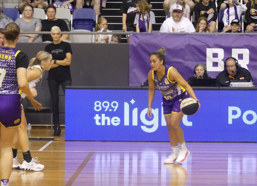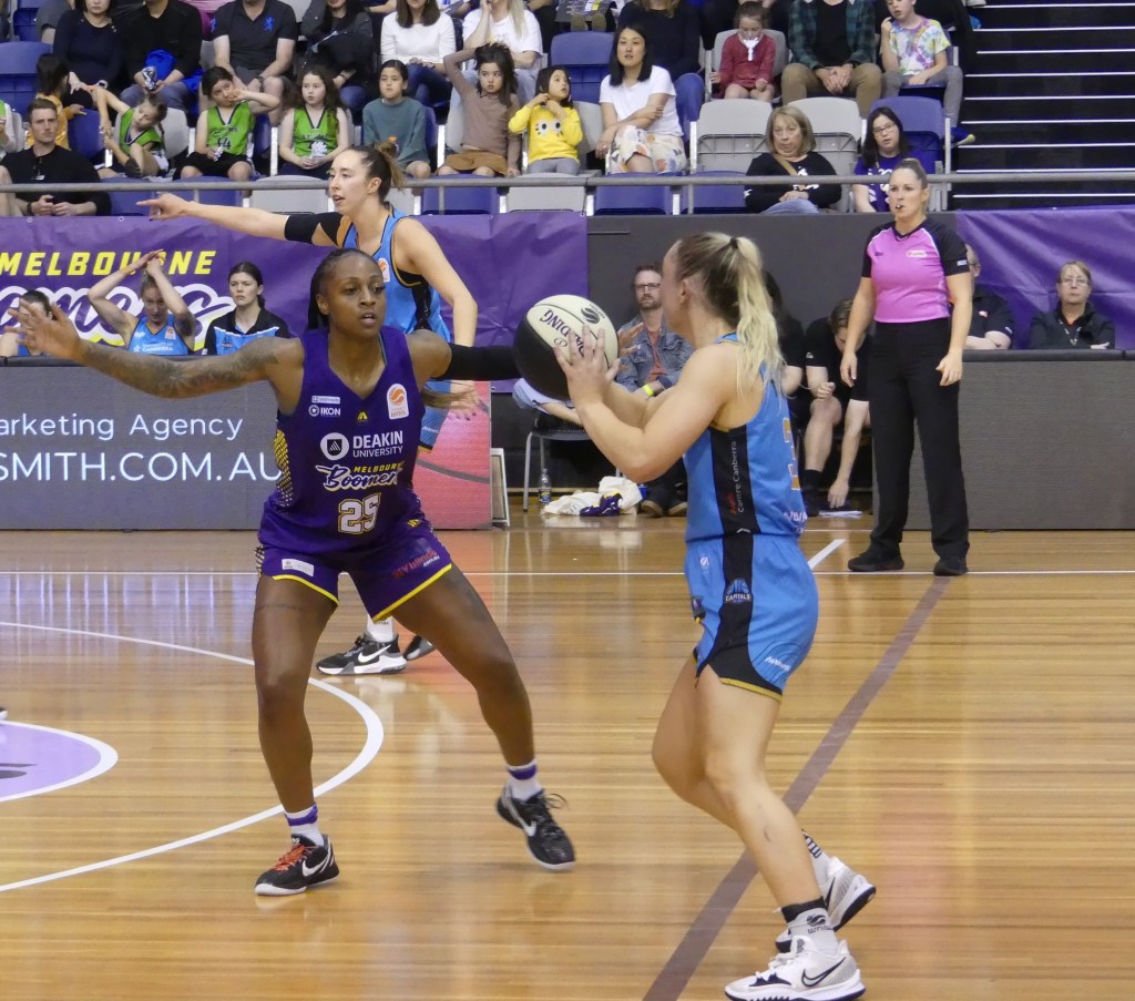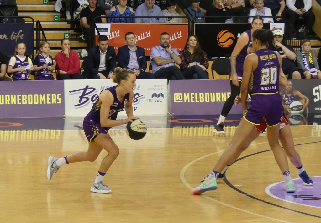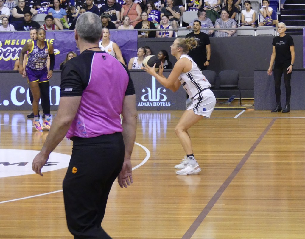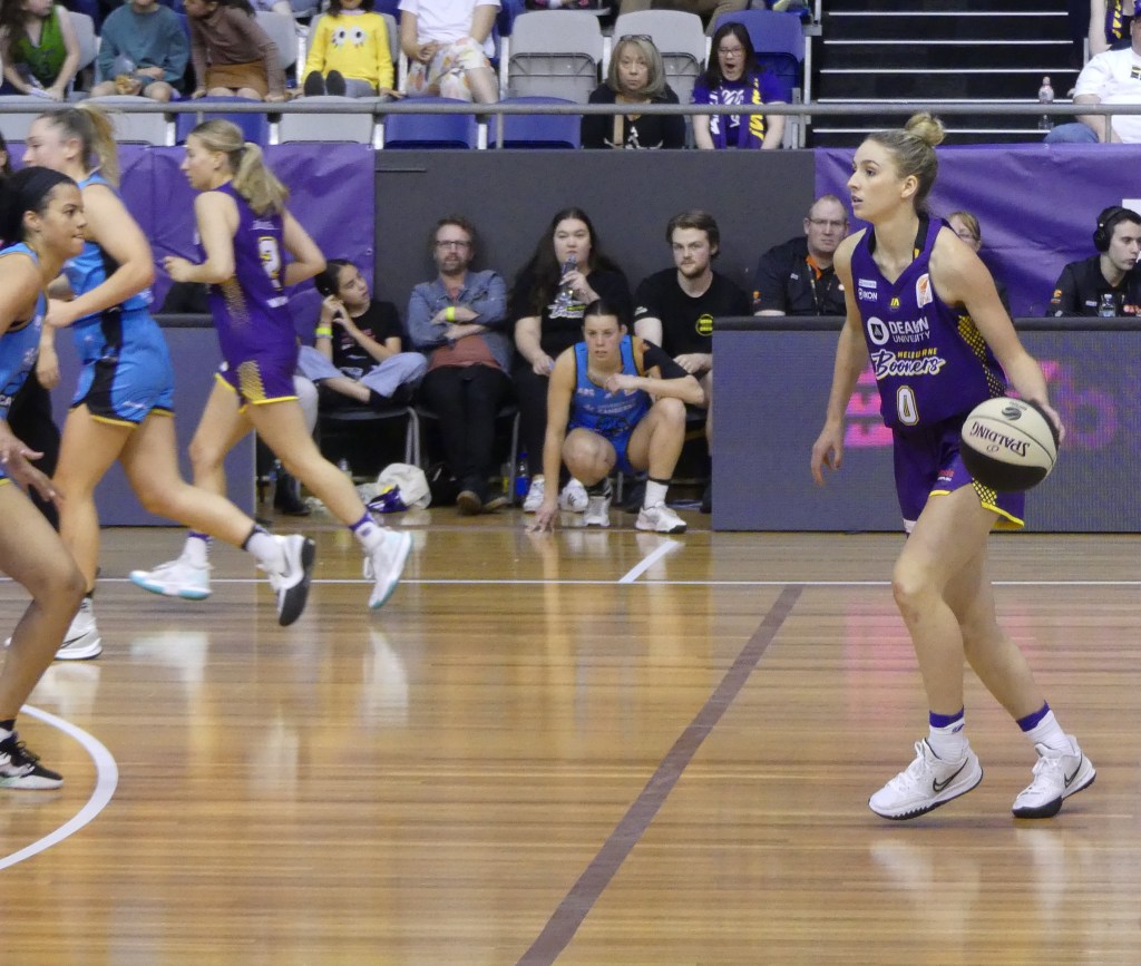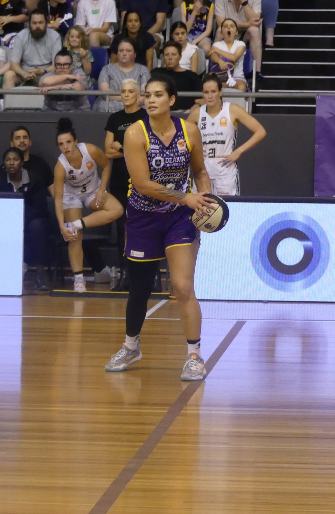 Cayla George playing for Melbourne Boomers against Southside Flyers at the State Basketball Centre on 9 November 2022