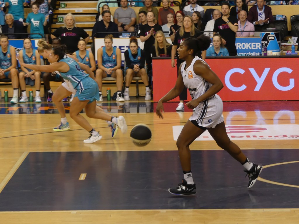 Tianna Hawkins playing for JCU Townsville Fire against the Southside Flyers at the State Basketball Centre on 10 December 2022