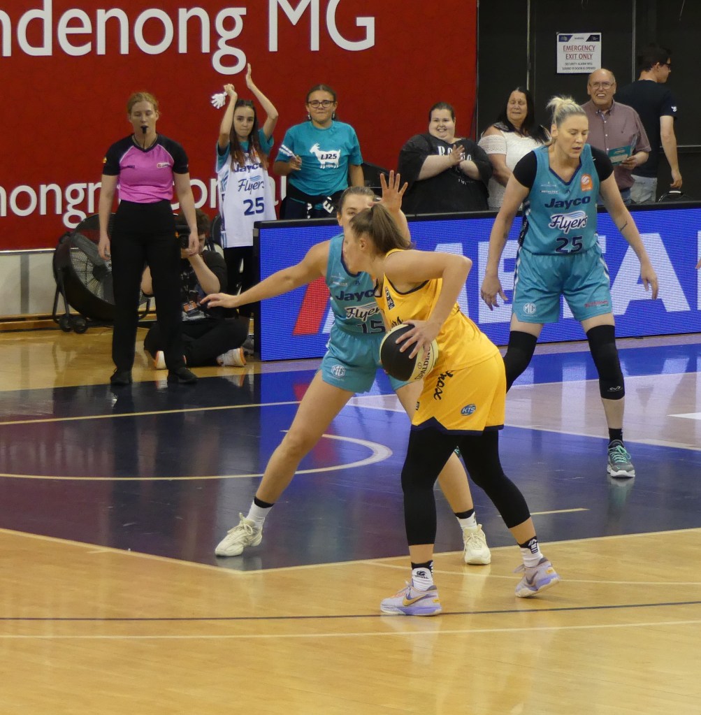 Maddison Rocci playing for Southside Flyers against Melbourne Boomers in game 3 of the semi final series at the State Basketball Centre on 15 March 2023