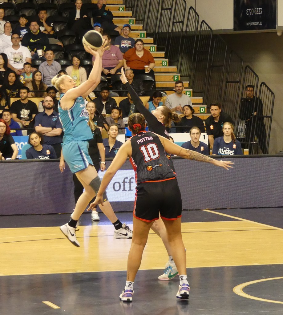 In the opening game of Round 4 the Southside Flyers hosted the Perth Lynx at the State Basketball Centre on Wednesday night 22 November in the game of the week broadcast on ESPN. After winning their first three games of the season at home Perth were on their first road trip of 2023/24 and were without three of their main roster players, Alex Ciabattoni and Ash Hannan were both out with COVID and Stephanie Gorman missed due to a foot injury. Perth’s full strength starting line-up of Aari McDonald, Miela Goodchild, Amy Atwell, Anneli Maley and Emily Potter were all suiting for the Lynx against Southside and it was likely that they would have to play more minutes than usual due to the club being undermanned.
