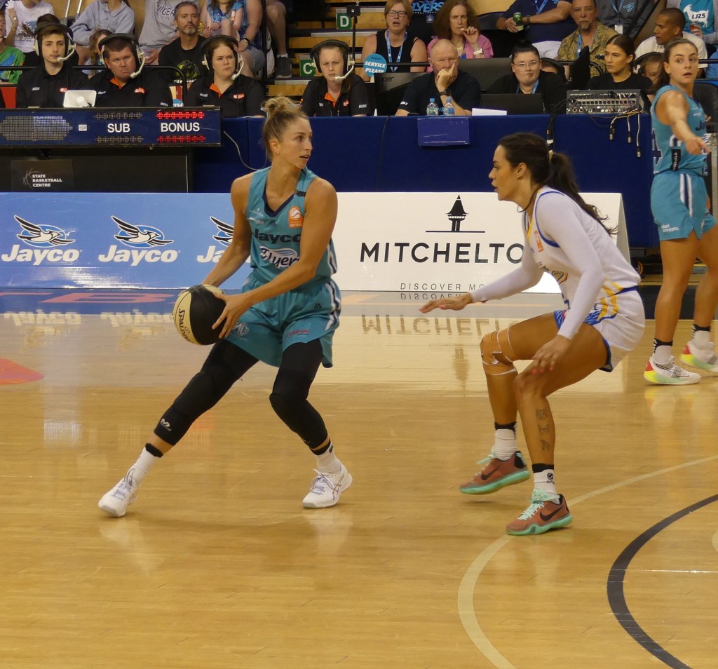 Against Bendigo Spirit on 4 December at Dandenong Stadium in the opening game of the WNBL season the Southside Flyers starting line-up was Maddy Rocci and Cole in the back-court along with O’Hea, Blicavs and Abby Bishop in the front-court. Other members of the Flyers 10 player main roster were Aimie Rocci, Jarry, Kristy Wallace, Kate Gaze and Emilee Harmon.
