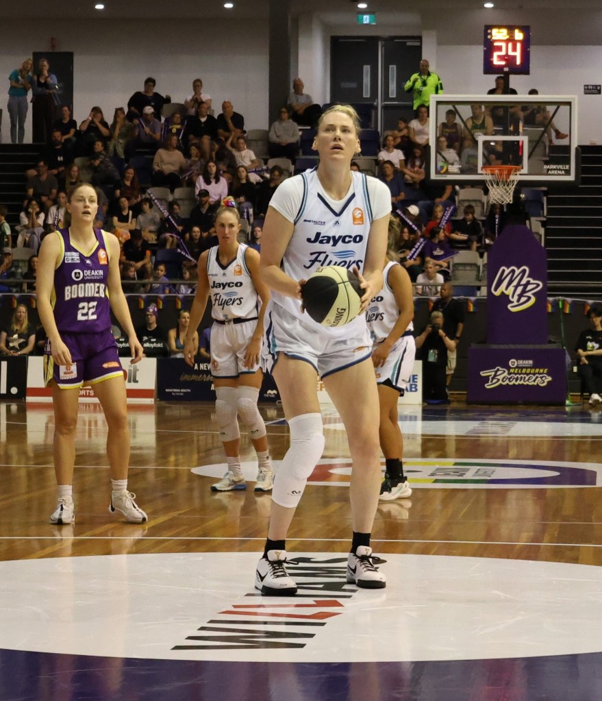Jasmine Dickey about to shoot a free throw for Southside Flyers in game 3 of the Grand Final against Perth Lynx at Melbourne Sports Centres – Parkville on 17 March 2024