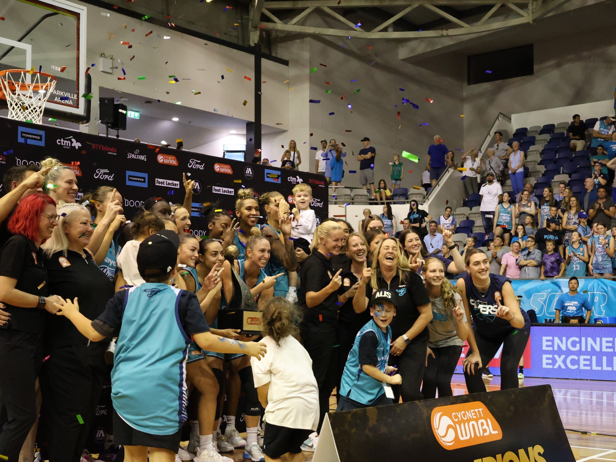 In a post-game interview on ESPN Megan Hustwaite said “Lauren it has been 25 years since your first WNBL title, 14 since you did it here, you are a WNBL Champion again.” Jackson responded “I know, it is crazy, it is awesome, I am so proud of the girls, they were incredible tonight and we worked for it this year, it has been a hard year. For us to get here and win it like this after what happened in game one here is pretty special.” Hustwaite asked “How tough is the group, you said to the players in the second half don’t forget what Perth did to us in game 1, you responded at every turn this WNBL season and you did it in this series.” LJ replied “Yeah, that’s been the thing with our team this season, we have been up and down and I think people ruled us out but whenever we have had our backs against the wall we have been able to respond, it has been pretty remarkable actually. It has been a crazy season but one that I will never forget.” Hustwaite asked “How special is it to share it with your beautiful boys, we have got Harry here, Lenny is running around celebrating, they are your everything.” Jackson answered “They are, it is so much better when you have got your kids and your family with you that is for sure, I couldn’t do it without them. It is remarkable and I am just so proud of them.”