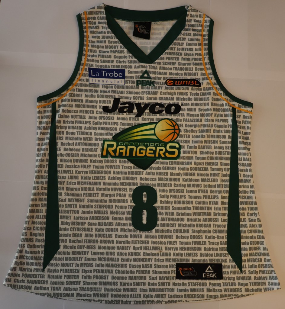 After the function at Dandenong Stadium the Jayco Rangers played an afternoon home game against cross-town rivals, Melbourne Boomers. For the game the Rangers wore uniforms celebrating the club’s 25th anniversary, featuring the name of every player that had represented the Rangers in the WNBL.