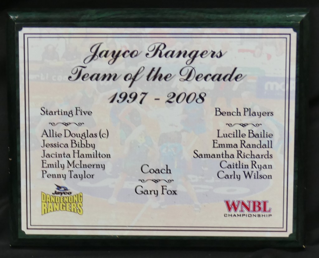 On 8 February 2008 the Dandenong Rangers named a squad of 20 players for their Jayco Rangers Team of the Decade, celebrating a 10 year partnership with naming-rights sponsor Jayco. The 20 player Jayco Rangers Team of the Decade was announced during half-time of the Dandenong Rangers home game against Perth at Dandenong Stadium. At the Rangers 2007/08 MVP night a 10 player Jayco Rangers Team of the Decade was announced, the team is listed below: