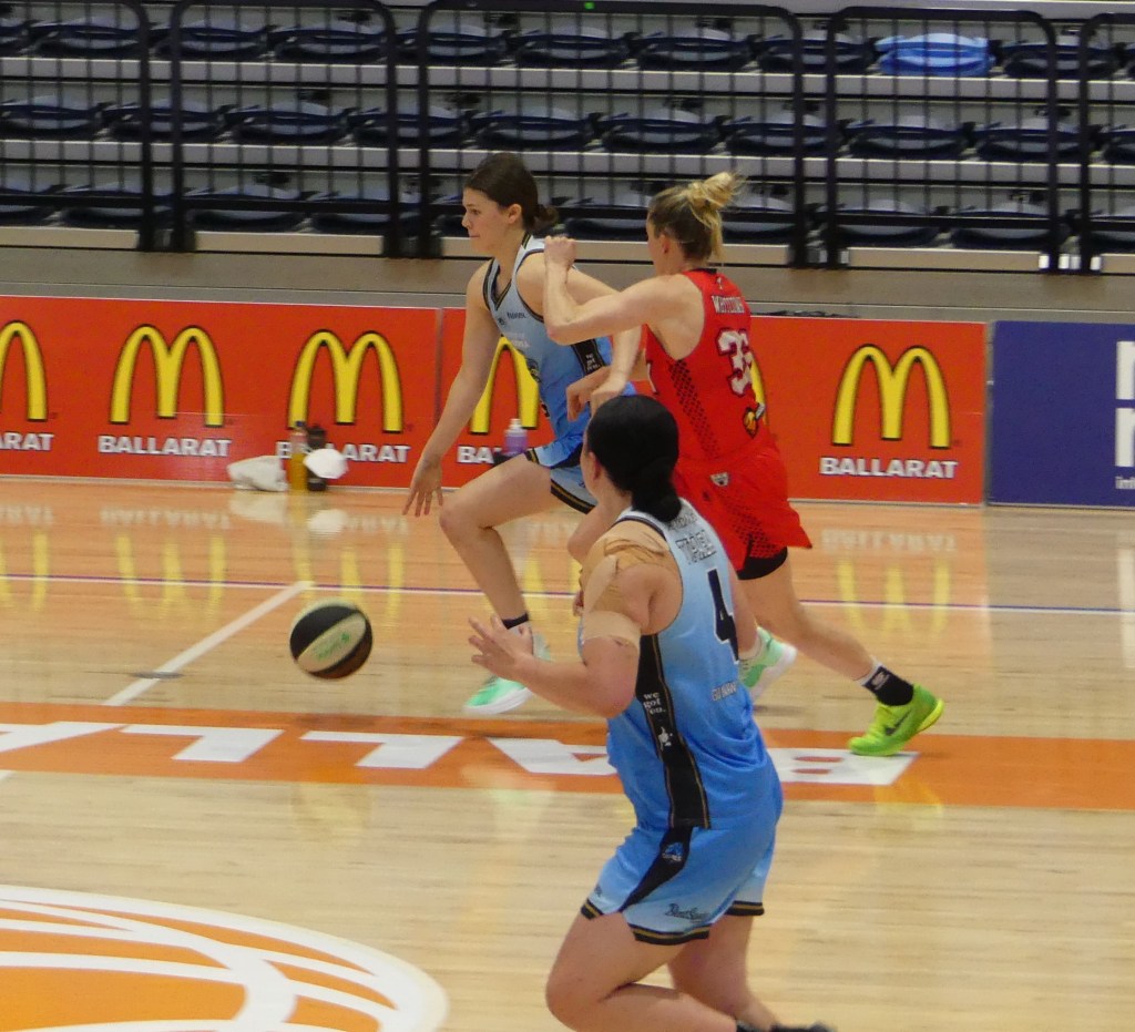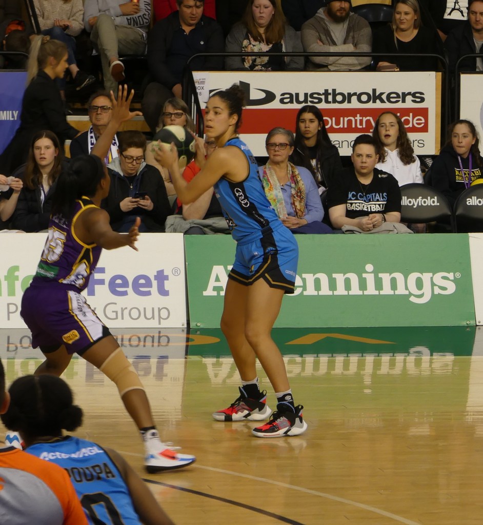 Sami Whitcomb playing for the Perth Lynx against the University of Canberra Capitals in a WNBL game at Selkirk Stadium, Ballarat on 19 January 2022