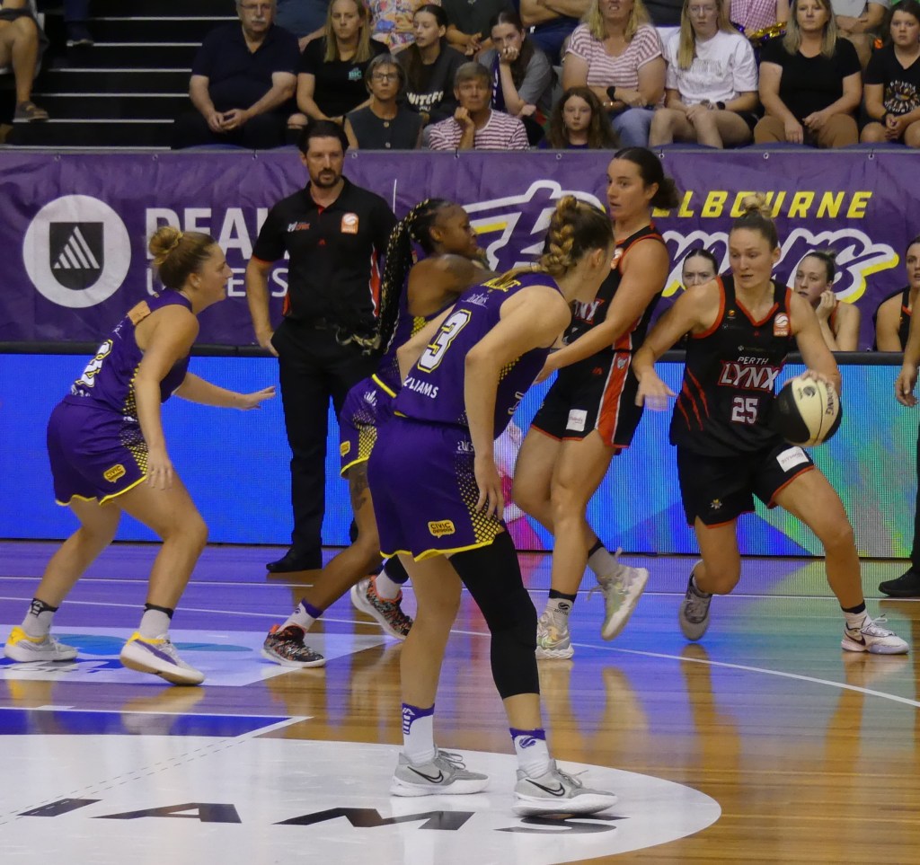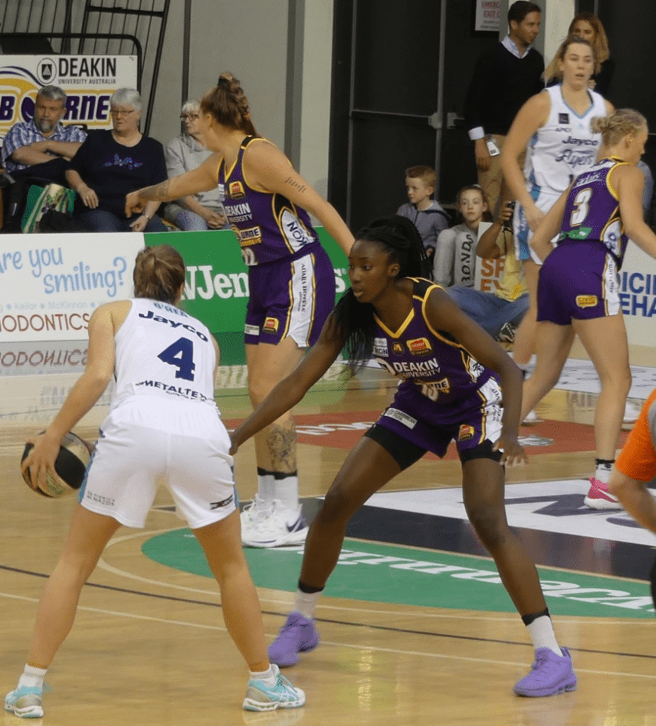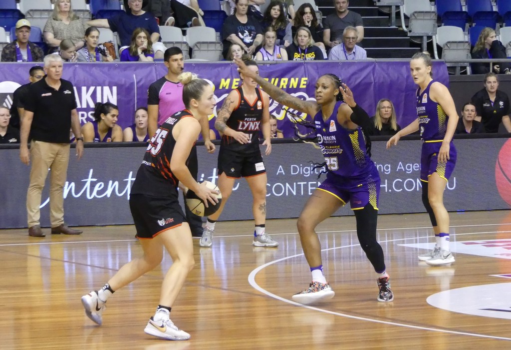 Jackie Young playing for the Perth Lynx against the Melbourne Boomers at Gippsland Regional Indoor Sports Stadium (GRISS), Traralgon on 6 February 2022