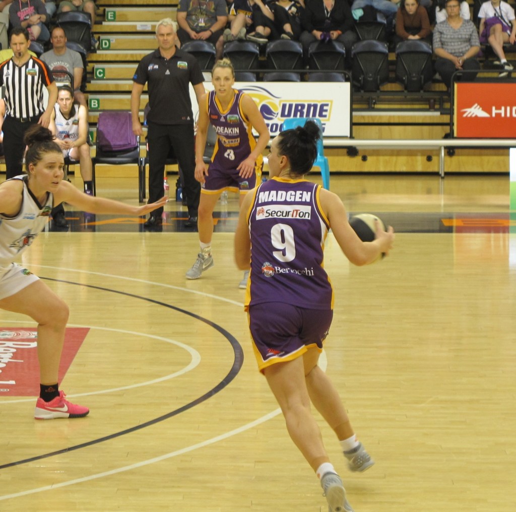 Kristy Wallace playing for Melbourne Boomers on 6 March in game 3 of the semi against Southside Flyers at Melbourne Sports Centres – Parkville