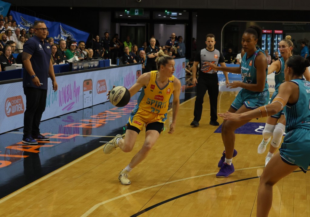 Sami Whitcomb playing for Bendigo Spirit against Southside Flyers at the State Basketball Centre on 22 December 2024