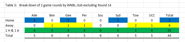 Table 3 below includes a break down of the double game rounds for each club. Details on this breakdown and when these double game rounds are for each club are included in the club section.