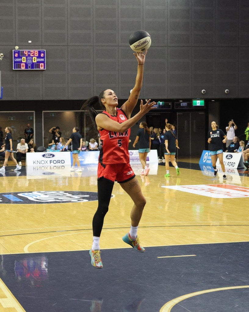 Ally Wilson during the warm-up for a Perth Lynx road game against Southside Flyers at the State Basketball Centre on 22 December 2024