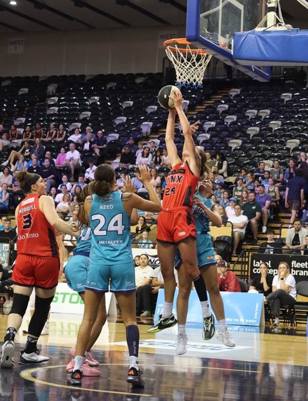 Anneli Maley playing for Perth Lynx in a road game against Southside Flyers at the State Basketball Centre on 22 December 2024